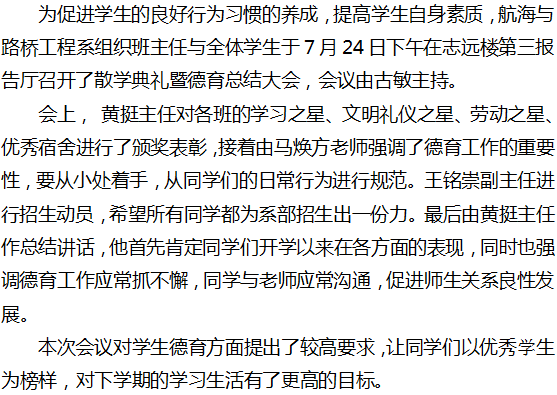 航海与路桥工程系召开2019-2020下学期散学典礼暨德育总结大会