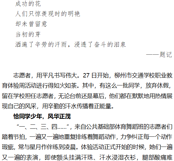 你坚持的样子很酷 ——记职教体验周里默默奉献的柳州交校学生志愿者