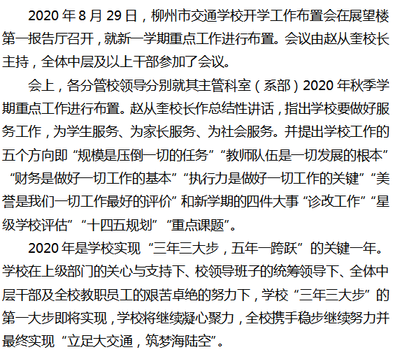 凝心聚力再扬帆 携手共创新成绩 ——柳州市交通学校召开开学工作布置会