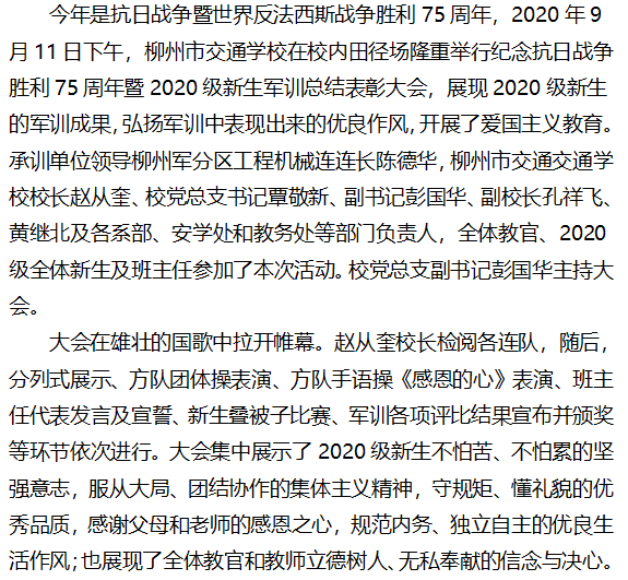 磨炼坚强意志 绽放炫彩青春 ——柳州市交通学校2020级新生军训圆满落幕