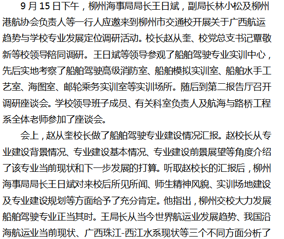 加强特色专业建设,找准办学发展定位 柳州海事局领导到柳州市交通学校调研指导工作