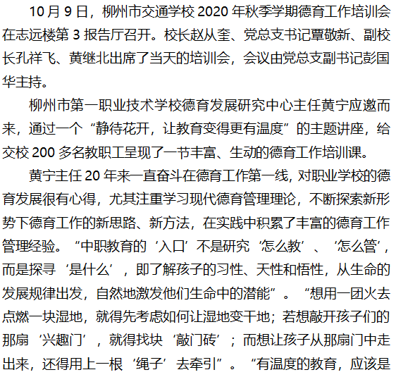 立德树人 德育为先 柳州市交通学校召开德育工作培训会