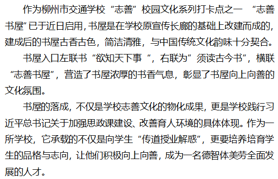 营造氛围 彰显向上向善精神 ——“志善书屋”启用记