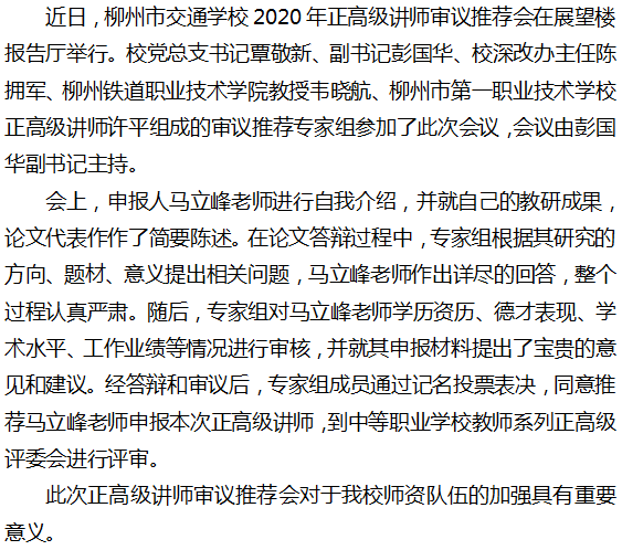 柳州市交通学校召开2020年正高级讲师 审议推荐会