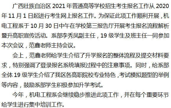 机电工程系开展广西壮族自治区2021年普通高等学校招生考生报名流程解析暨升高职宣传活动