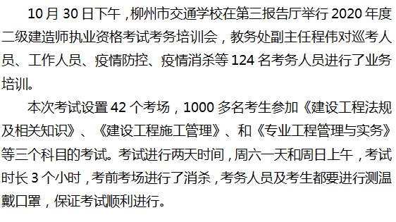 柳州市交通学校举行2020年度二级建造师执业资格考试