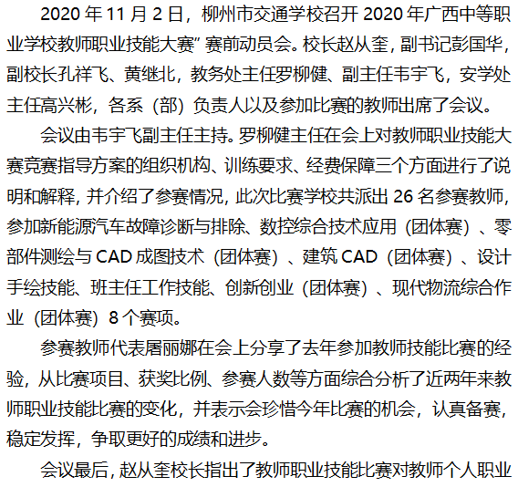 柳州市交通学校召开2020年广西中等职业学校教师职业技能大赛”赛前动员会
