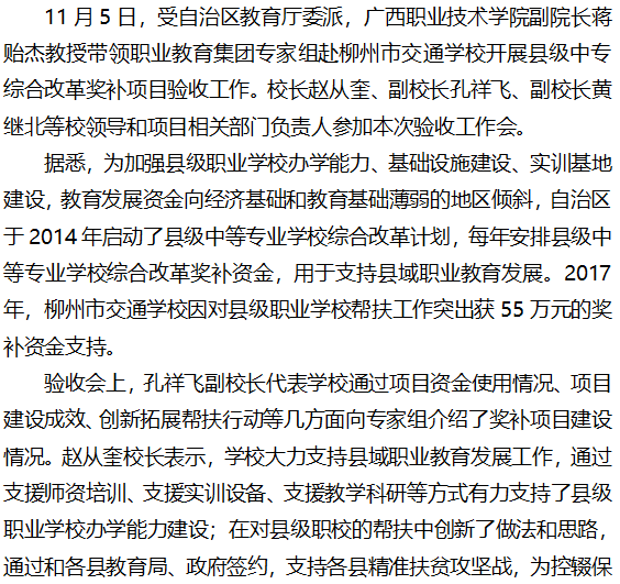 立足交通办教育,真情帮扶显成效 ——柳州市交通学校完成县级中专综合改革奖补项目验收
