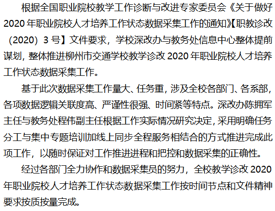市交通学校按要求完成2020年职业院校人才培养工作状态数据采集