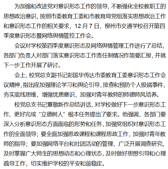 柳州市交通学校召开第四季度意识形态 暨网络舆情管控工作会