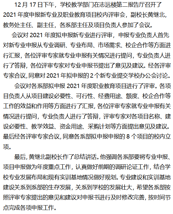 学校召开2021年度申报新专业及职业教育项目校内评审会