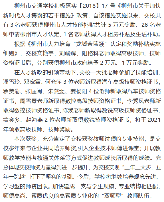 喜报!柳州市交通学校3名教师获柳州市政府万元奖励