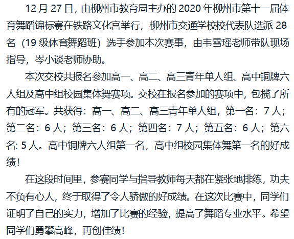 市交通学校在柳州市第十一届体育舞蹈锦标赛中收获满满!