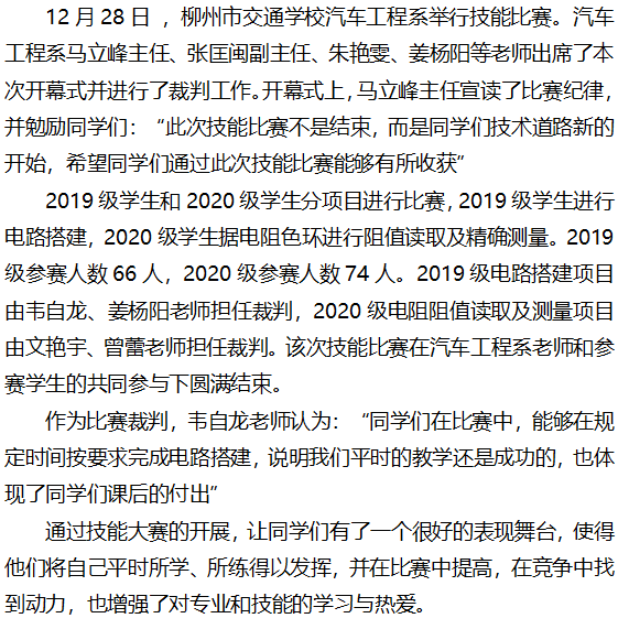展技能,秀风采--汽车工程系举行学生技能比赛