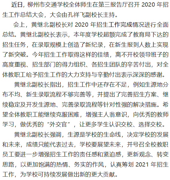 柳州市交通学校召开2020年招生总结大会