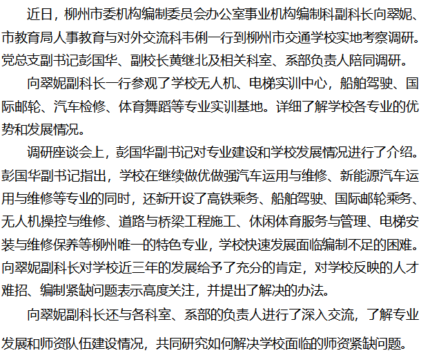 柳州市委编办和市教育局调研组到我校实地调研