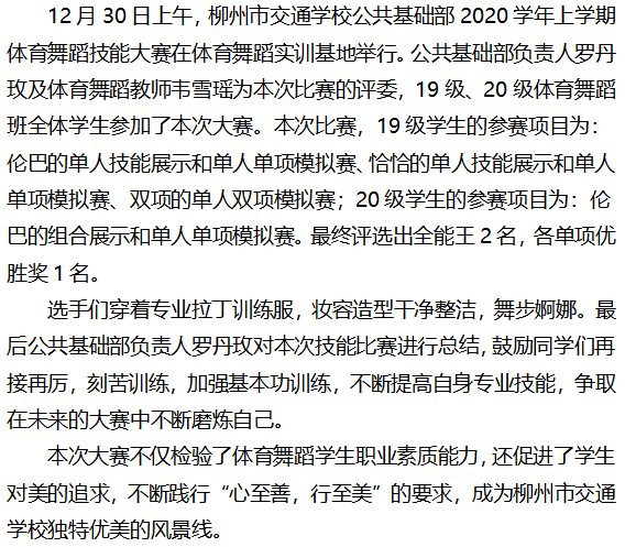 比赛磨炼技能,舞姿彰显魅力 ——记公共基础部2020学年上学期体育舞蹈技能大赛