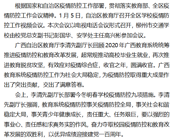 柳州市交通学校参加自治区教育厅 关于学校疫情防控工作视频会议