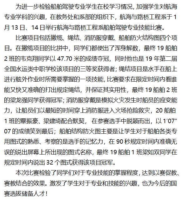 航海与路桥工程系船舶驾驶专业举行技能比赛