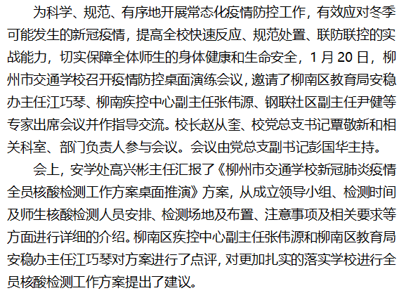 紧绷思想之弦 筑牢坚固防线 --柳州市交通学校召开疫情防控桌面演练会议