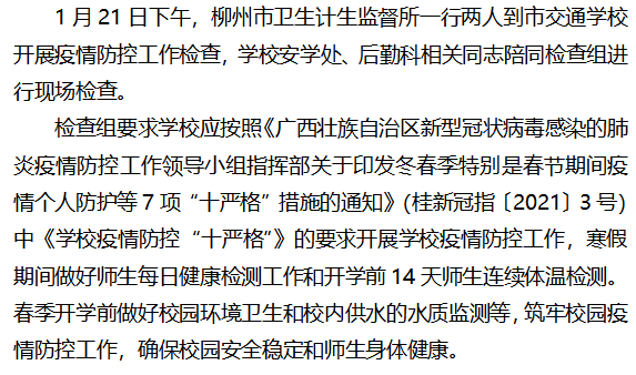 柳州市卫生计生监督所到市交通学校检查指导疫情防控工作