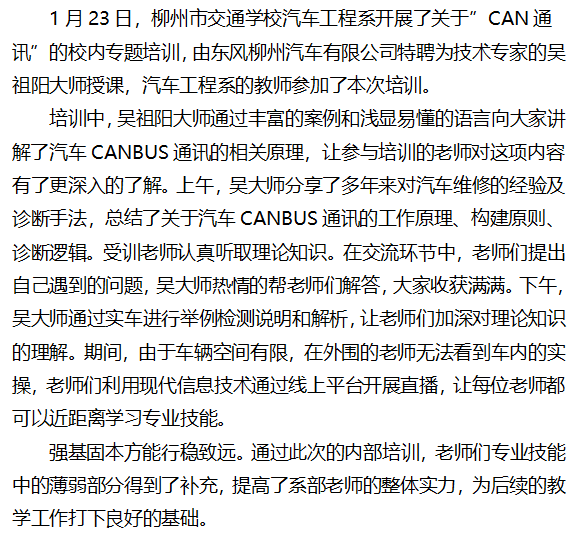 固本强基 行稳致远 ——柳州市交通学校汽车工程系开展专业技能内部培训