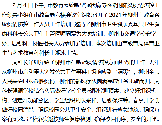 柳州市交通学校参加2021年柳州市教育系统疫情防控工作培训