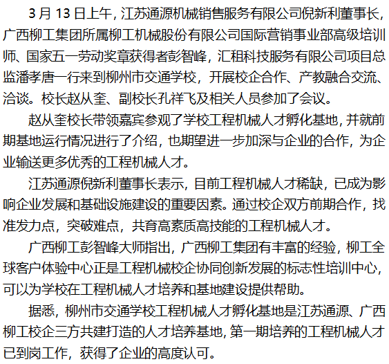 柳州市交通学校迎来工程机械大咖共育人才培养