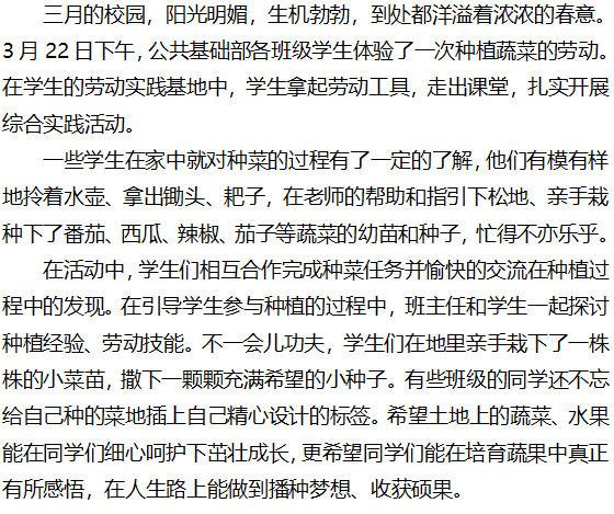 学生“种菜”忙,劳动快乐多 ——记公共基础部学生种植蔬菜活动