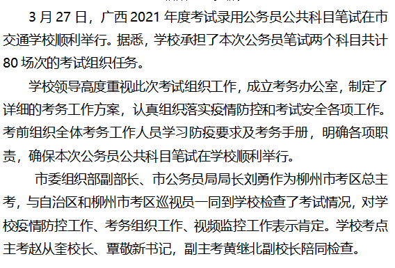广西2021年度考试录用公务员公共科目笔试在市交通学校举行