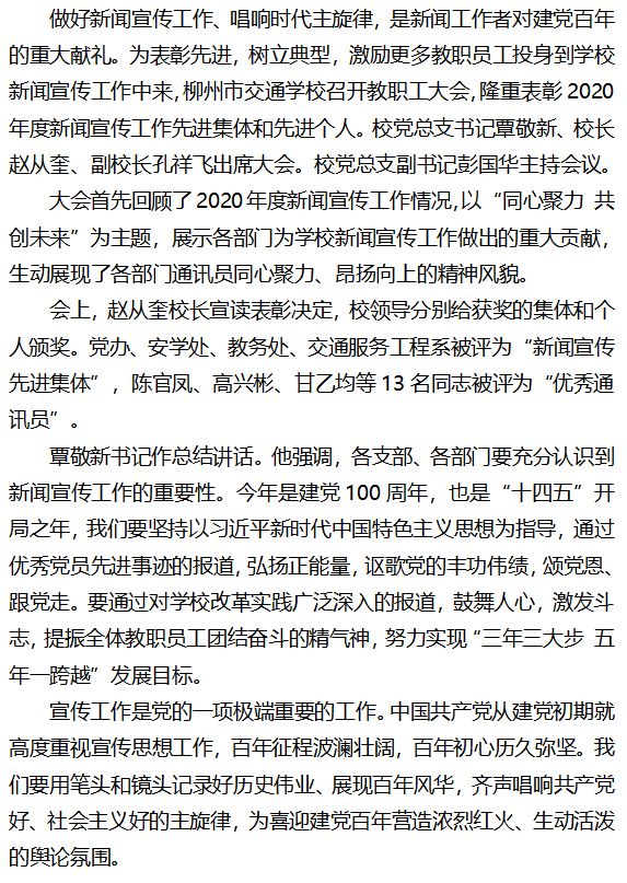 唱响主旋律 弘扬正能量 ——柳州市交通学校隆重表彰新闻宣传工作先进集体和先进个人