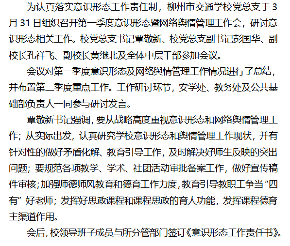 柳州市交通学校召开2021年第一季度意识形态暨网络舆情管理工作会