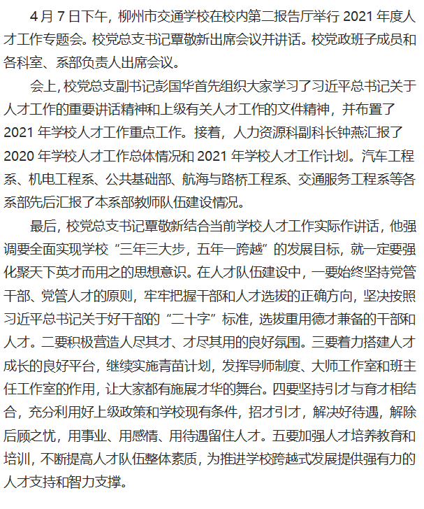 党员心声大家谈|柳州市交通学校:召开人才工作专题会