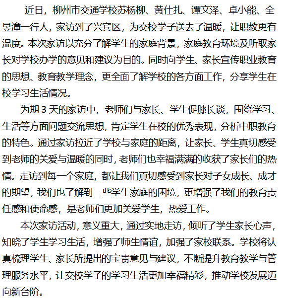 走进家庭传递温情,情系学生家校共融 ——记柳州市交通学校来柳团队来宾家访活动