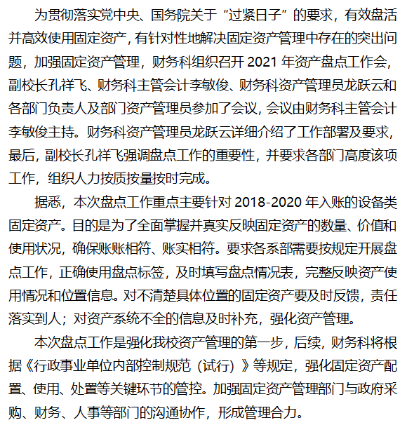 加强基础管理,确保家底清晰 ——财务科组织开展资产盘点工作