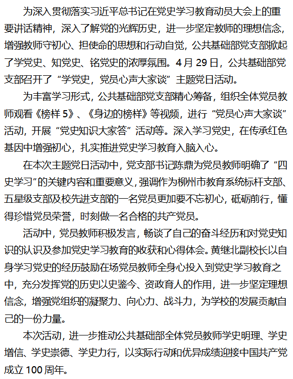 党员心声大家谈|柳州市交通学校公共基础部党支部主题党日活动