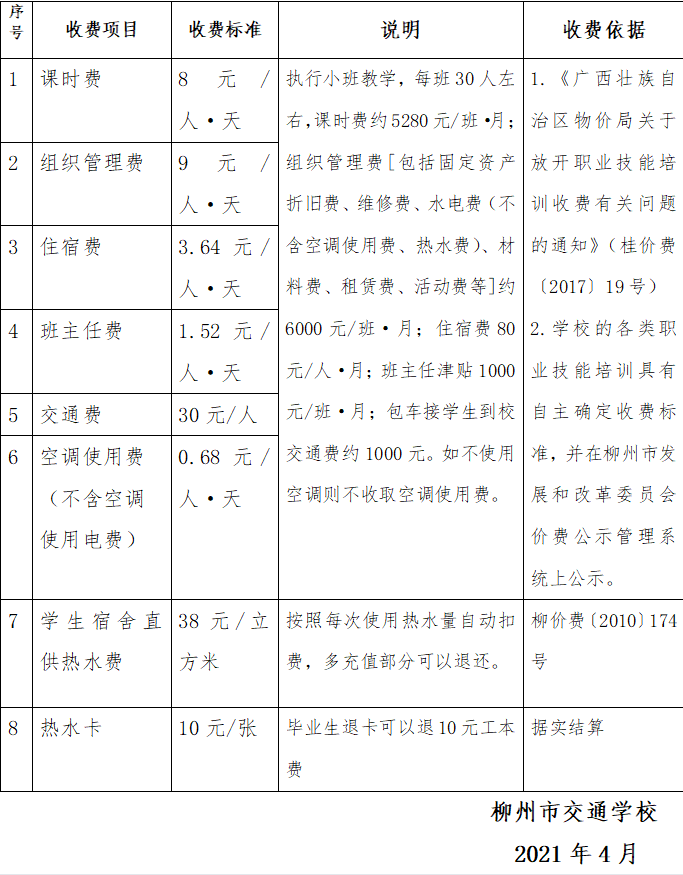 劳动和职业技能启蒙教育培训班 收费项目和标准公示