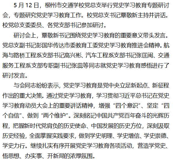 党史大家谈|柳州市交通学校举行党史学习教育专题研讨会