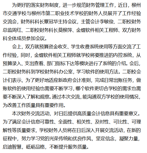 加强沟通,携手进步 ——交校、二职校财务工作交流活动