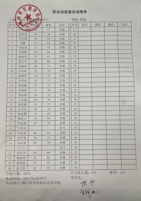 柳州市交通学校职业技能等级认定 2021年第十三批社会认定拟通过人员名单公示