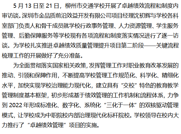 柳州市交通学校开展卓越绩效流程和制度内审访谈