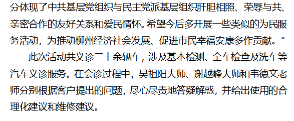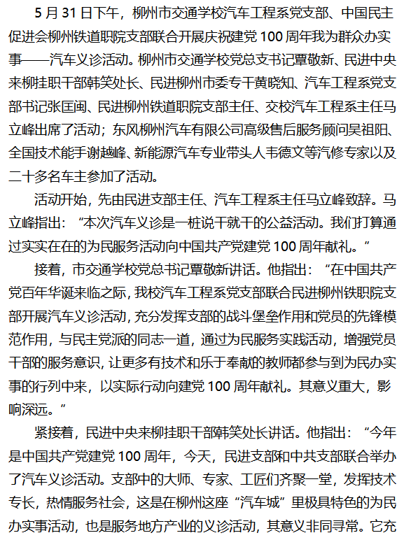 工匠担当 感恩社会 ——柳州市交通学校汽车工程系党支部联合民进柳铁职院支部开展汽车义诊活动