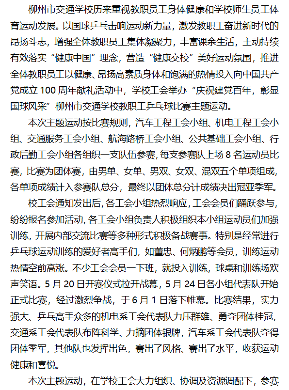 乒乓击响新力量 国球护航美健康 ——柳州市交通学校工会2021年员工乒乓球赛主题运动报道