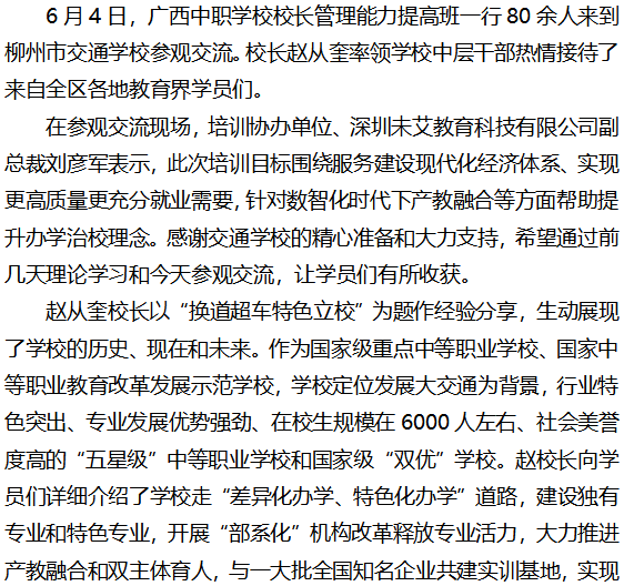 广西中职学校校长管理能力提高班一行到柳州市交通学校参观交流
