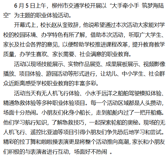 我为群众办实事|“大手牵小手 筑梦海陆空” --柳州市交通学校开展“六一”职业体验活动