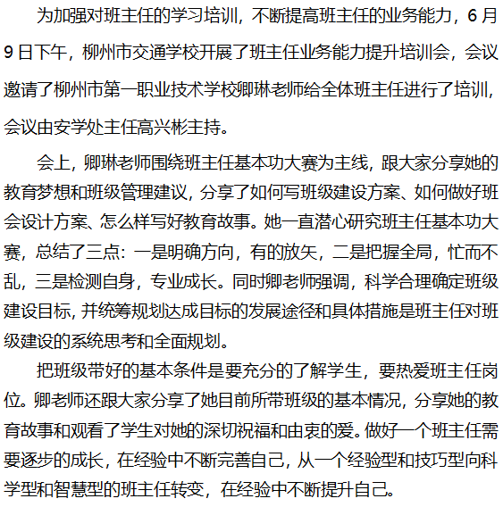 我为群众办实事|柳州市交通学校召开班主任业务能力提升培训会