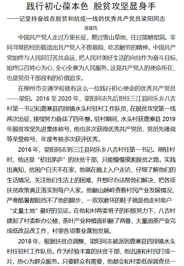 选树一批红色榜样|柳州市交通学校庆祝建党100周年优秀党员先进事迹报道之八:
