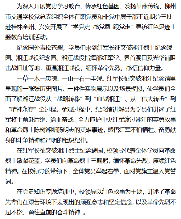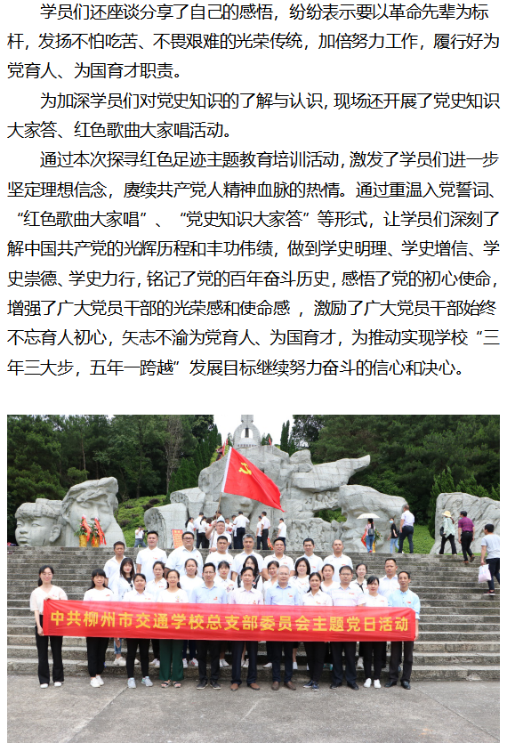 踏寻红色足迹,赓续革命精神--柳州市交通学校开展“学党史 感党恩 跟党走”寻访红色足迹主题教育培训活动