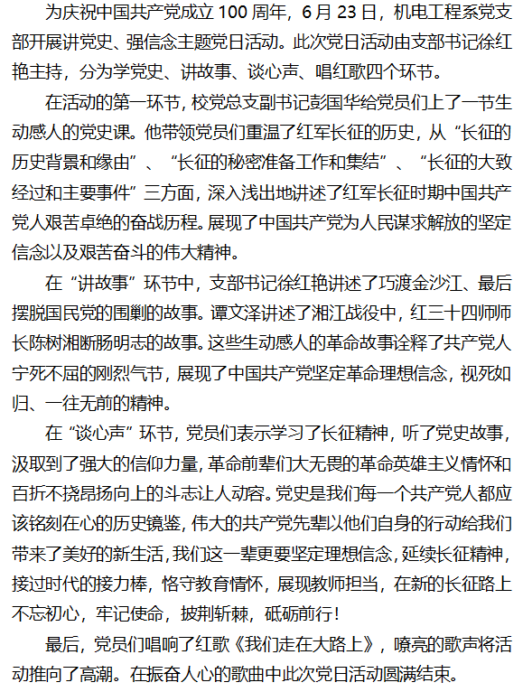 党史故事大家讲|机电工程系党支部开展学党史主题党日活动