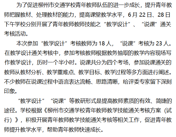 柳州市交通学校开展青年教师技能之“教学设计”“说课” 通关考核活动
